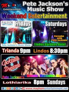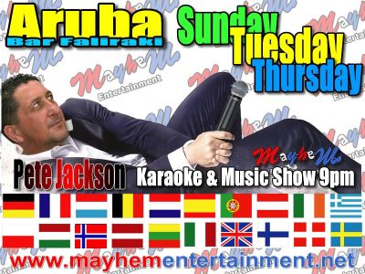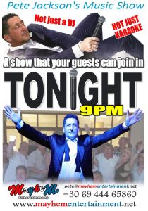 #mayhementertainment #petejackson #rhodesgreece #vacation #music #karakoke #entertainer #singers #discohire #soundandlight #petejacksonsmusicshow #karaokeshow #weddingdj #weddingdisco #soundandlightingrental #rhodesweddingdj #rwdj