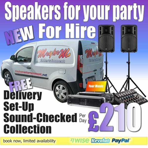 How To PayWe accept most forms of payment. Including MONZO, WISE, PayPal and Revolut. However if you wish to pay by Revolut, we will need to email you the payment link please send your request to pete@mayhementertainment.net Please put the information including the date, time and your name in the message. FULL Payment only |